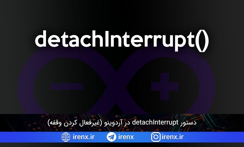 از دستور detachInterrupt در برنامه نویسی برد های آردوینو برای غیرفعال کردن وقفه مورد نظر استفاده میشود.