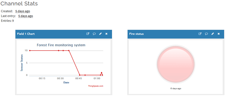 بعد از تشخیص آتش از یک حلقه else-if برای راه اندازی اقدامات مورد نیاز Sim800l استفاده میشود. همانطور که در زیر نشان داده شده است ، AT+CIPSTART برای اتصال با سرور Thingspeak و شروع اتصال استفاده می شود. AT+CIPSEND برای ارسال داده به سرور استفاده می شود. در اینجا یک نکته مهم این است که “Thingspeak write API Key” را با کلید اصلی خود در رشته ای که قبلاً یادداشت کردید جایگزین کنید.
