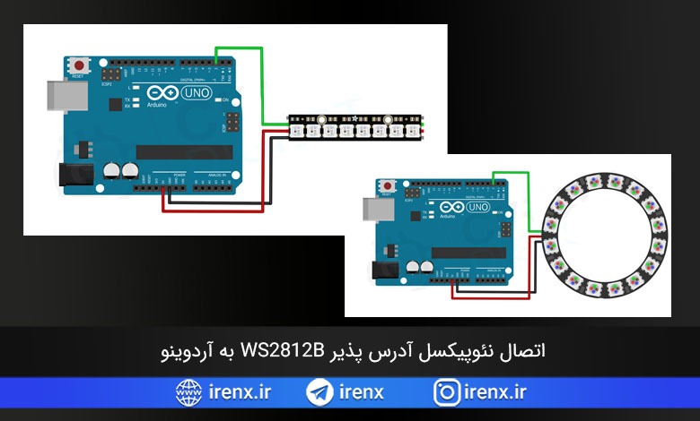 اتصال نئوپیکسل آدرس پذیر WS2812B به آردوینو