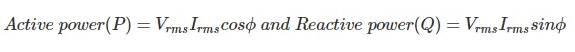 [که در آن Vrms و Irms ریشه میانگین مربع ولتاژ و شکل موج جریان است]