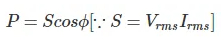 که در آن S حاصل ضرب مقدار میانگین ریشه ولتاژ و جریان است.