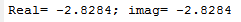 [RealPart, ImagPart]=pol2cart(-3*pi/4,4); disp(['Real= ',num2str(RealPart),'; imag= ', num2str(ImagPart)]);
