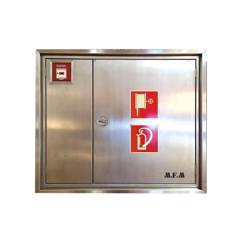 جعبه استیل آتش نشانی در دو نوع استیل مات، استیل آینه ای طلایی و بصورت جعبه توکار و روکار می باشد. جنس این نوع از جعبه های آتش نشانی از فواد ضد زنگ ( استنلس استیل ) می باشد. این جعبه های استیل برای نگهداری شلنگ و قرقره در سیستم تر یا خشک آتش نشانی مورد استفاده قرار می گیرند.
