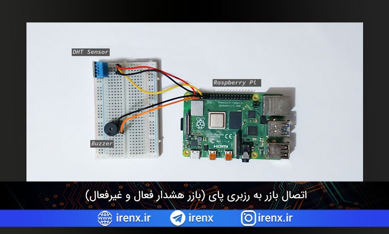 اتصال بازر به رزبری پای (بازر هشدار فعال و غیرفعال)