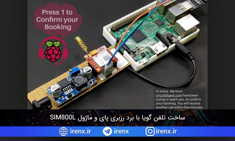 مدار ساخت تلفن گویا با SIM800L و رزبری پای